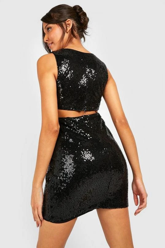 BOOHOO Sequin Plunge Mini Party Dress