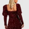 BOOHOO Sequin Puff Sleeve Mini Dress
