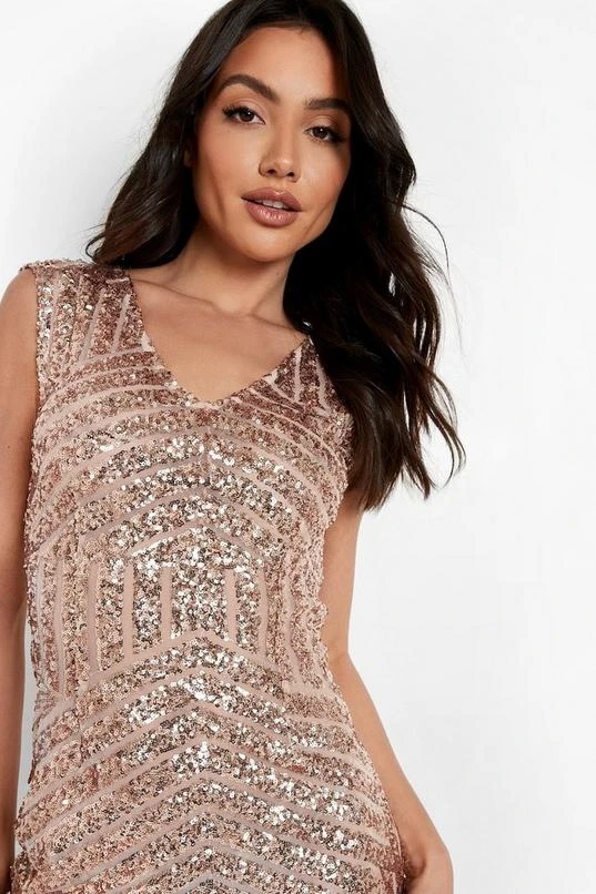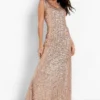 BOOHOO Sequin Sleeveless Maxi Bridesmaid Dress