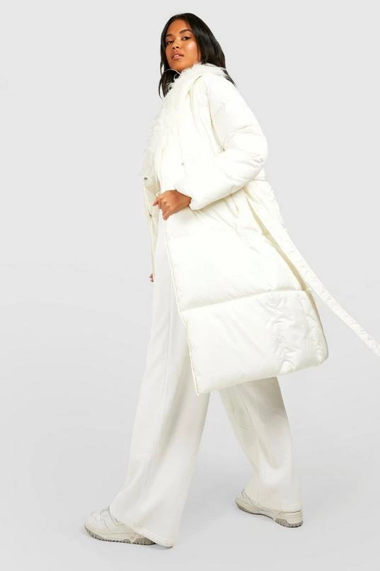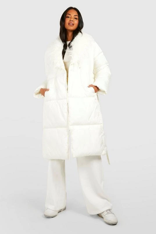 BOOHOO Shaggy Faux Fur Collar Puffer