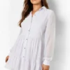 BOOHOO Sheer Dobby Collard Smock Dress