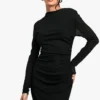 BOOHOO Sheer Ruched Long Sleeve Maxi Dress