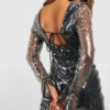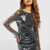 BOOHOO Sheer Sequin Flare Split Cuff Mini Dress