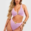 BOOHOO Shell Crinkle Plunge High Waisted Bikini Set