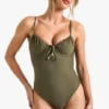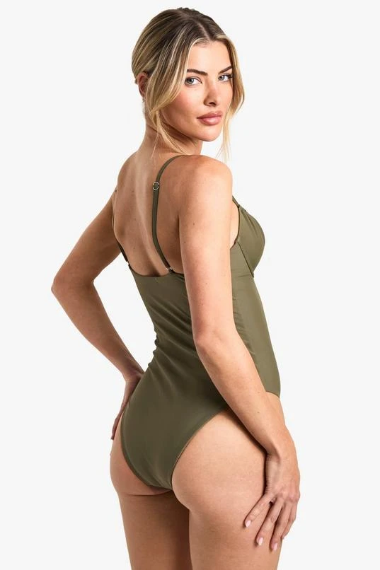BOOHOO Shell Trim Ruched Cup Tie Front Underwired Swimsuit