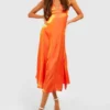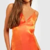 BOOHOO Shimmer Satin Strappy Slip Dress