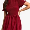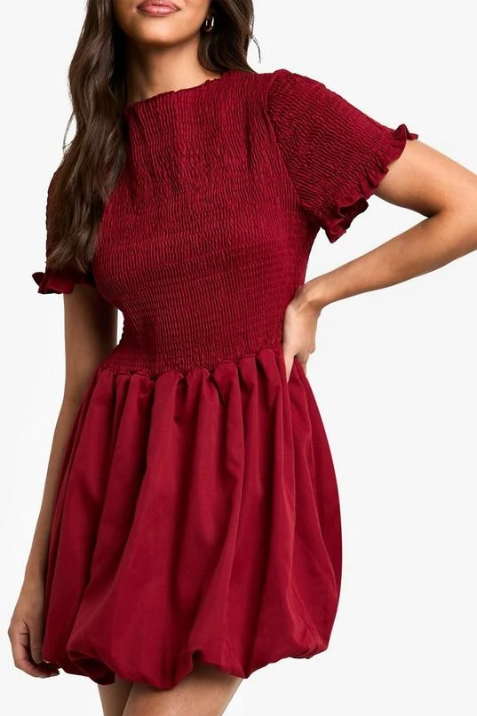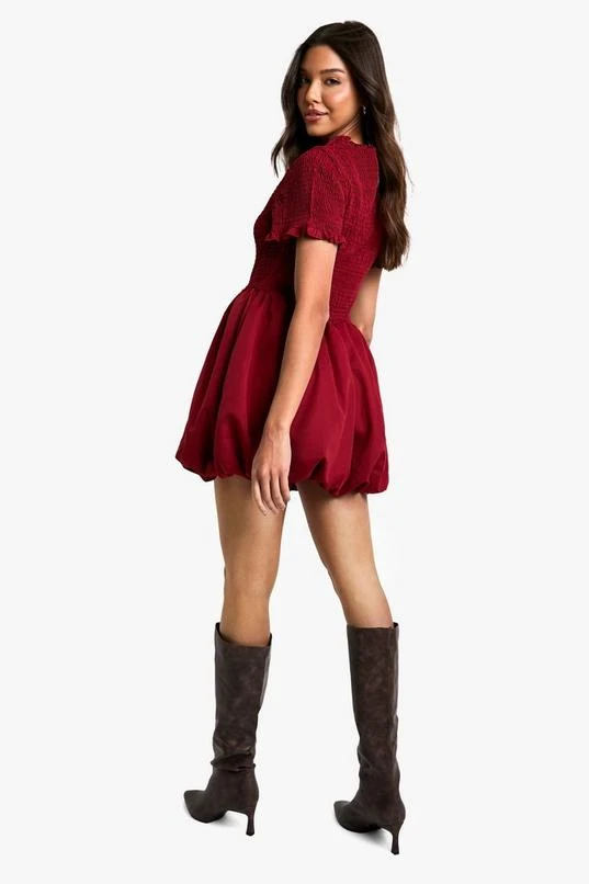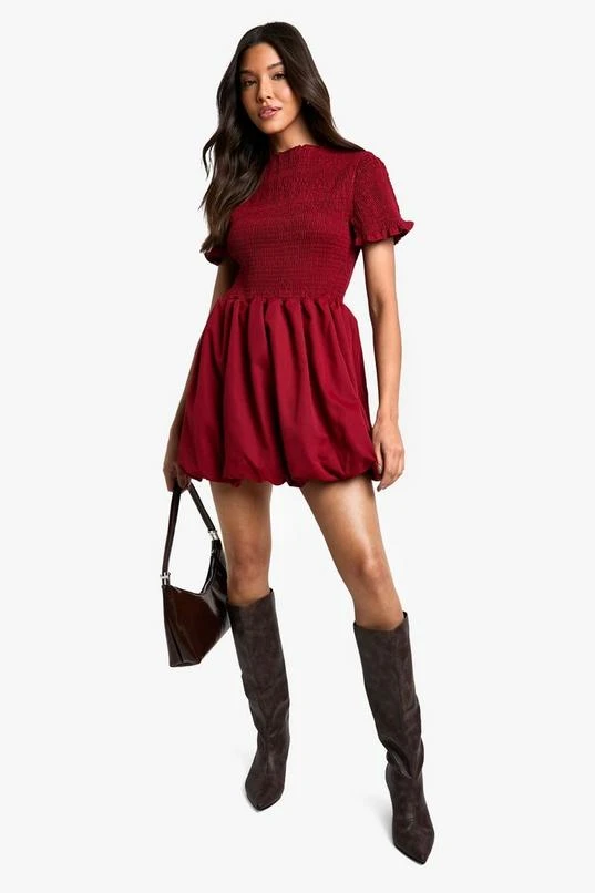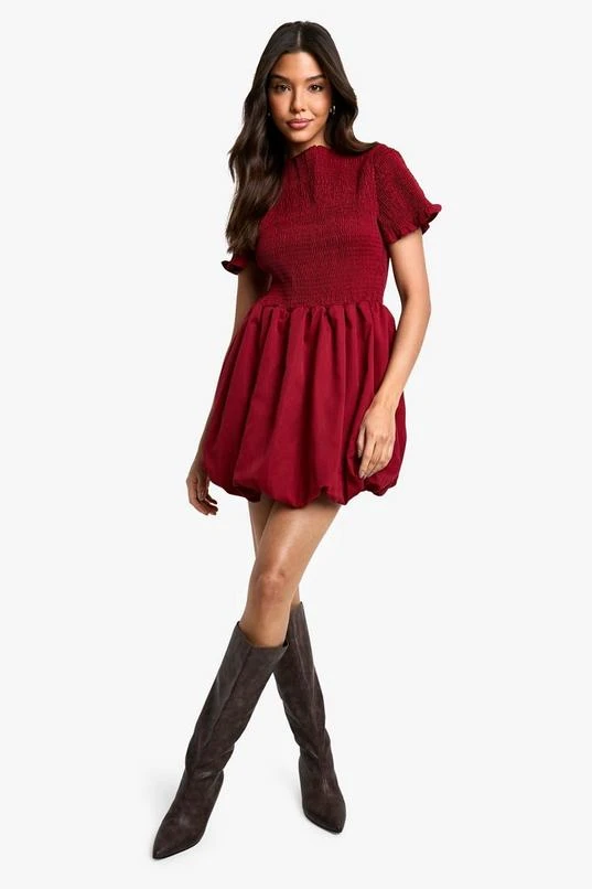 BOOHOO Shirred Puff Sleeve Mini Dress