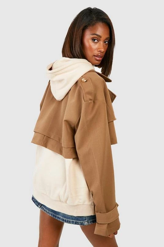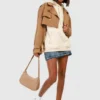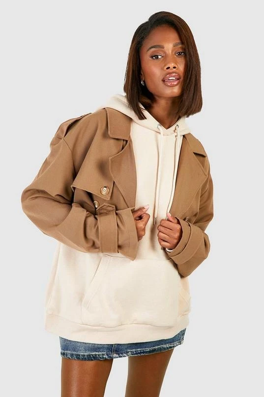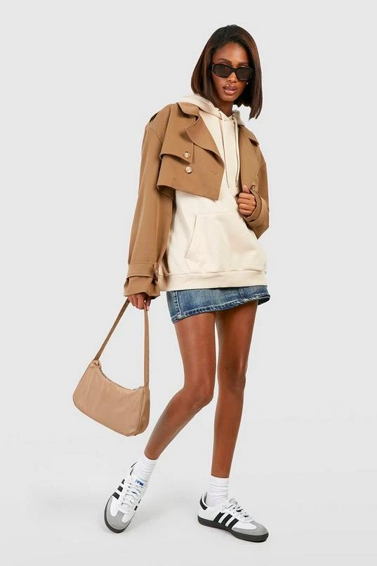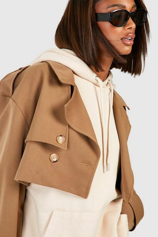 BOOHOO Shoulder Pad Crop Trench Coat