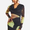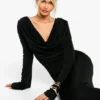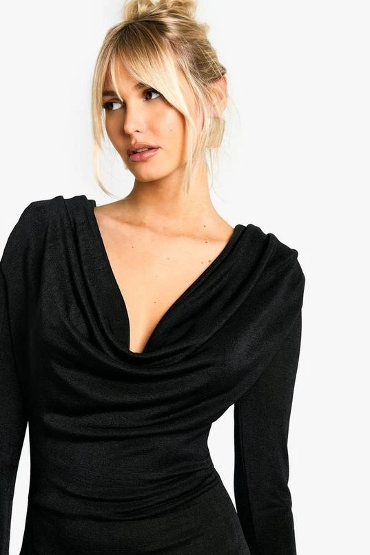 BOOHOO Shoulder Pad Plunge Long Sleeve Maxi Dress