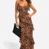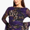 BOOHOO Slash Neck Mixed Leopard Print Flare Sleeve Mini Dress