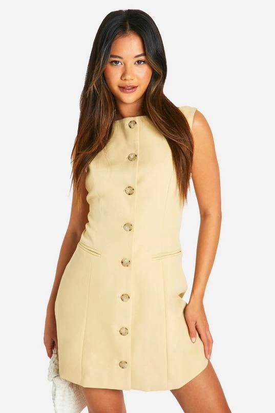 BOOHOO Slash Neck Mock Horn Mini Dress