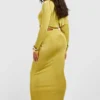 BOOHOO Slash Neck Ruched Acetate Slinky Cut Out Maxi Dress