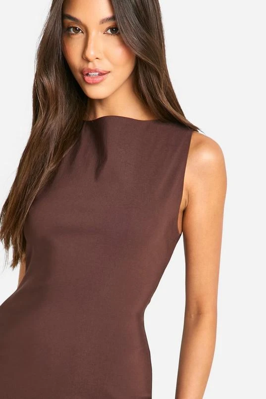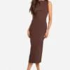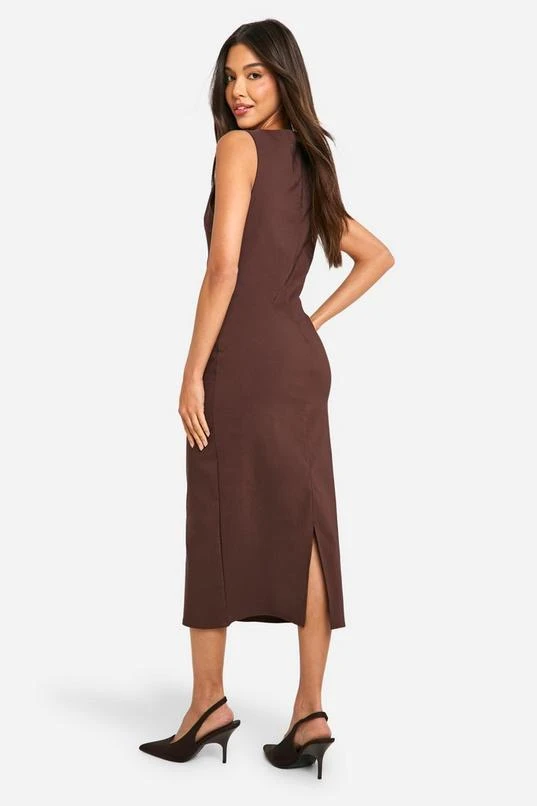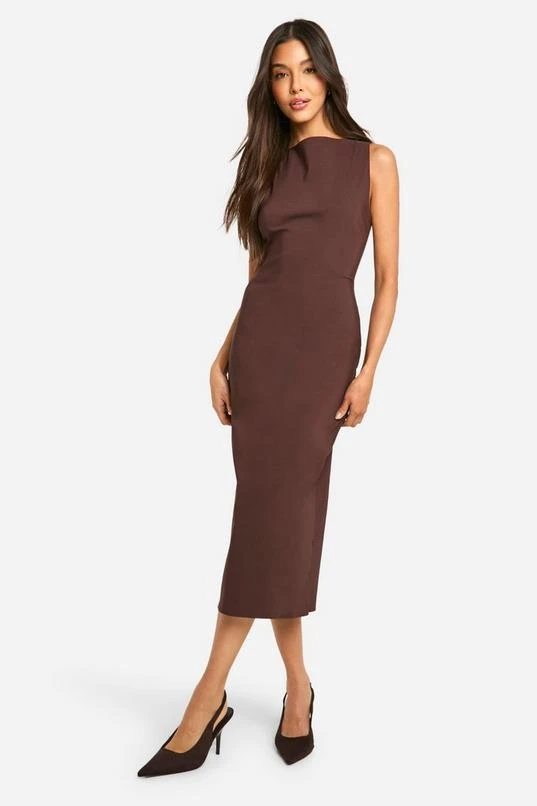 BOOHOO Slash Neck Tailored Midi Dress