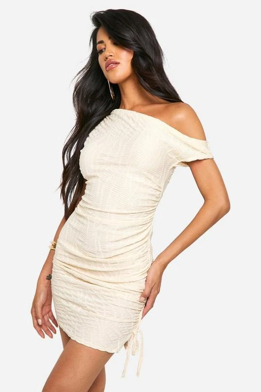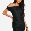 BOOHOO Slash Neck Textured Rib Mini Dress