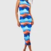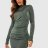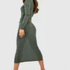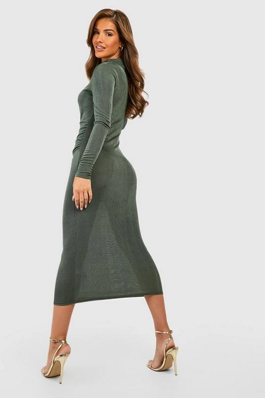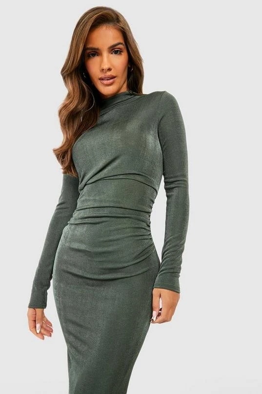 BOOHOO Slinky High Neck Midi Dress