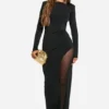 BOOHOO Slinky Mesh Detail Long Sleeve Maxi Dress