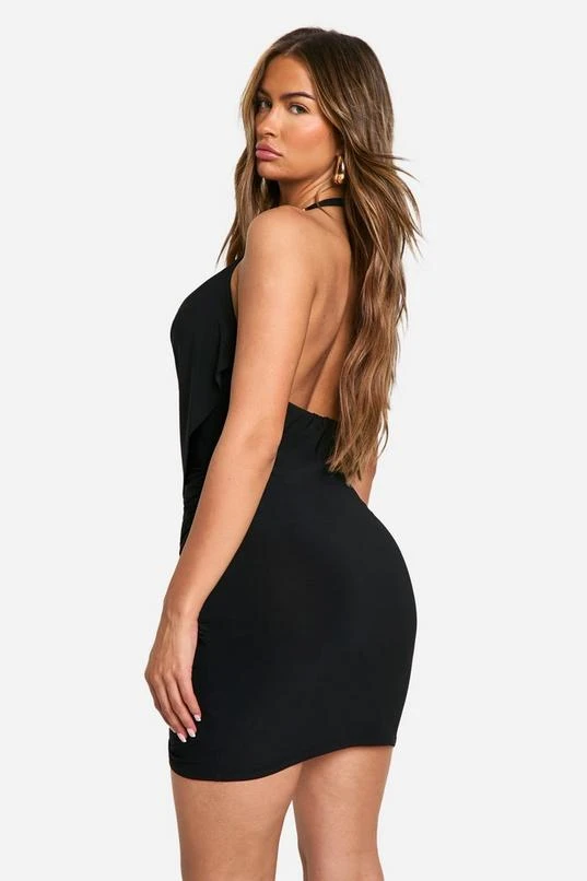 BOOHOO Slinky Open Back Gold Trim Detail