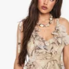 BOOHOO Snake Chiffon Ruffle Maxi Dress