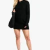 BOOHOO Soft Knit Rib Zip Neck Oversized Mini Dress