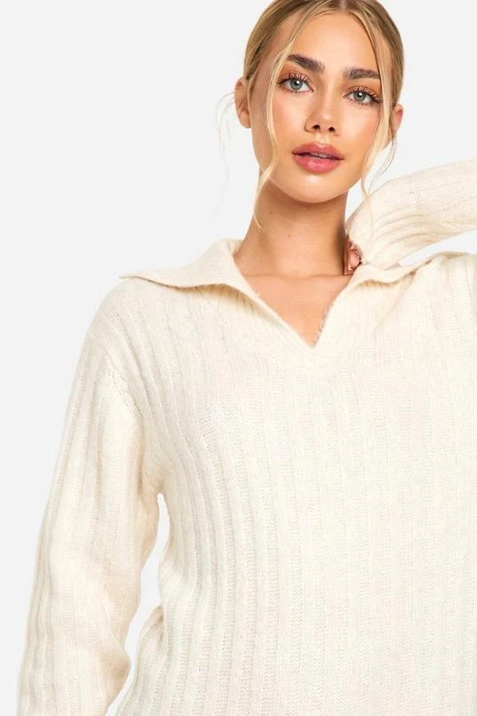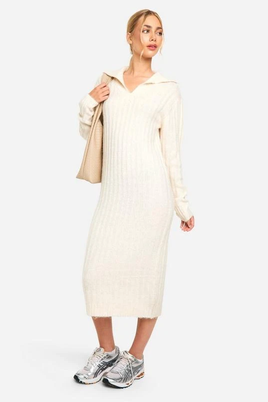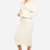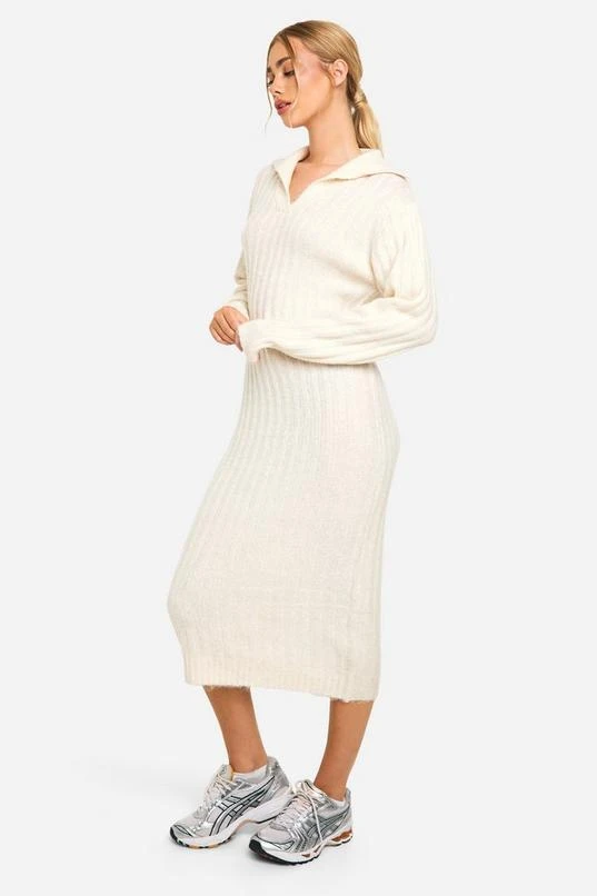 BOOHOO Soft Knit Thick Rib Collar Detail Midi Dress