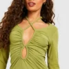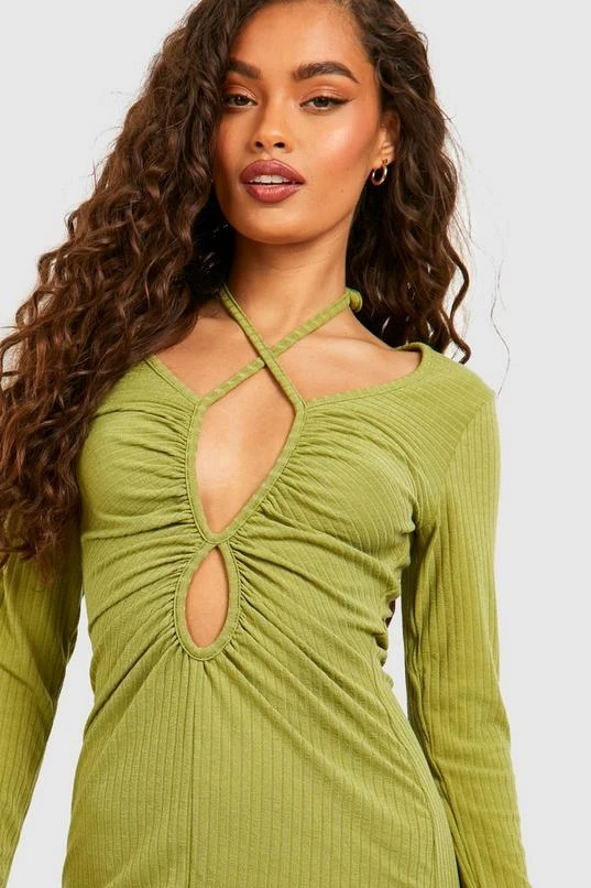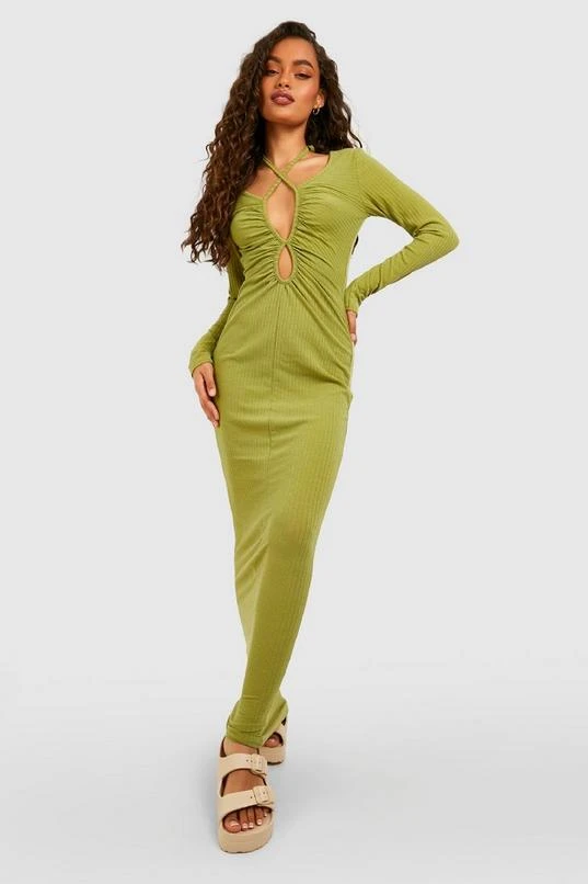 BOOHOO Soft Rib Cut Out Strappy Midi Dress