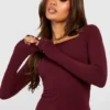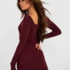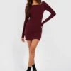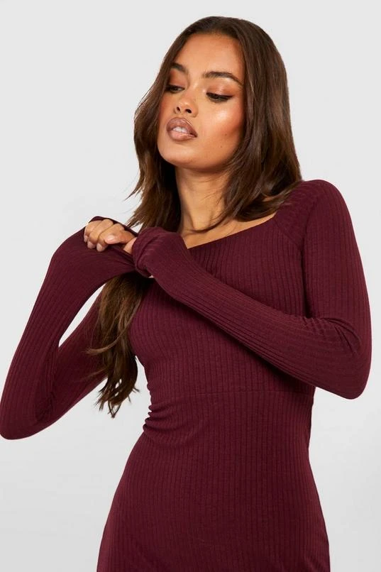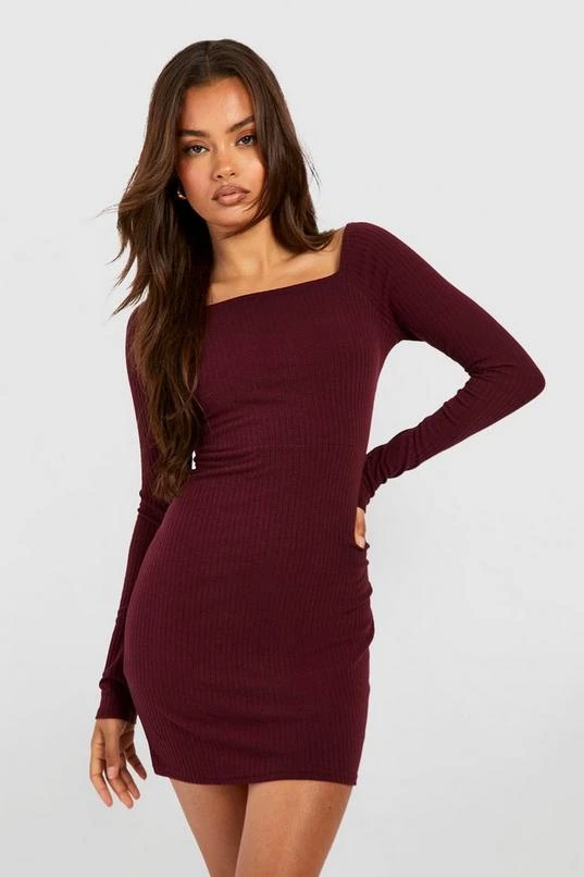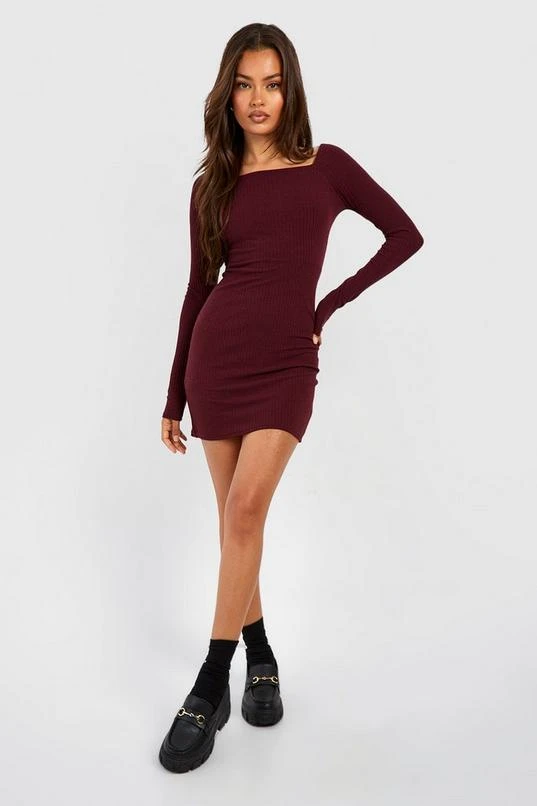 BOOHOO Soft Rib Square Neck Long Sleeve Mini Dress