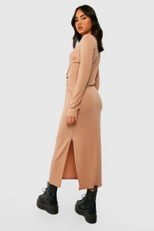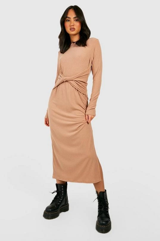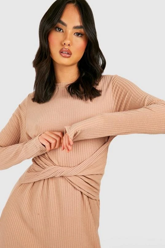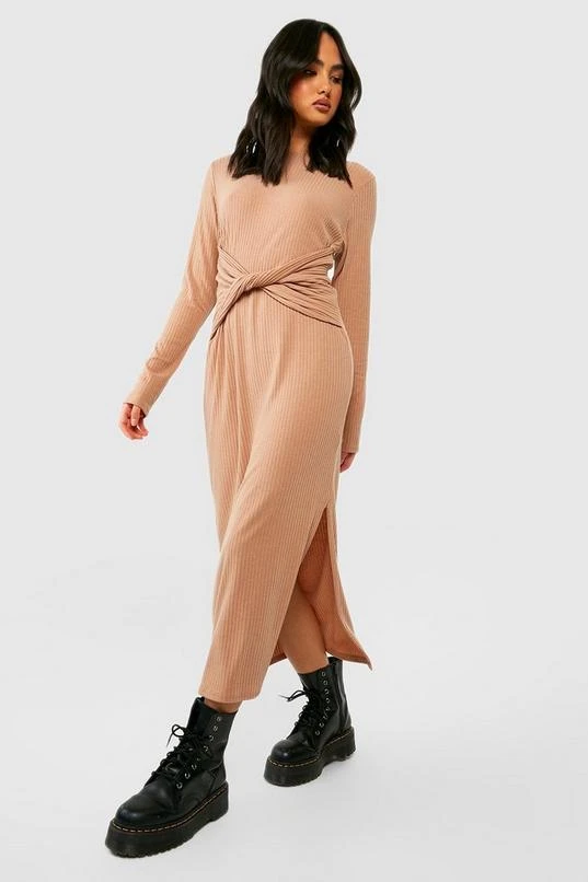 BOOHOO Soft Rib Twist Detail Oversized Sweater Dress