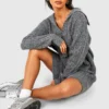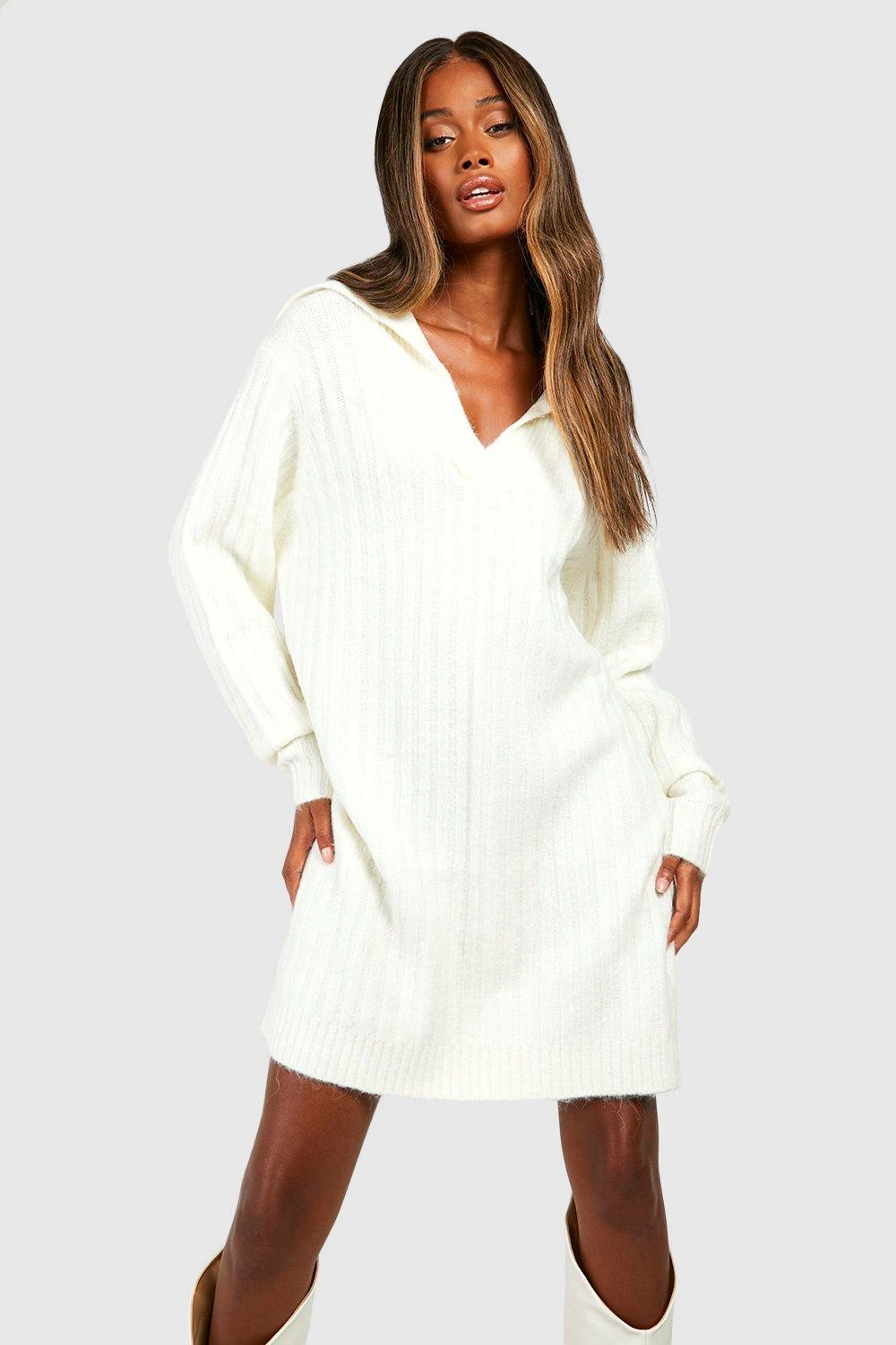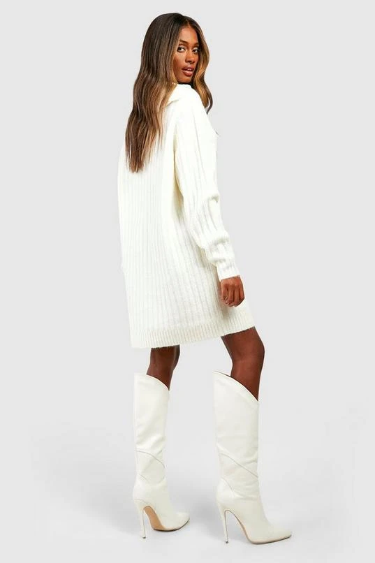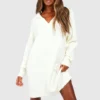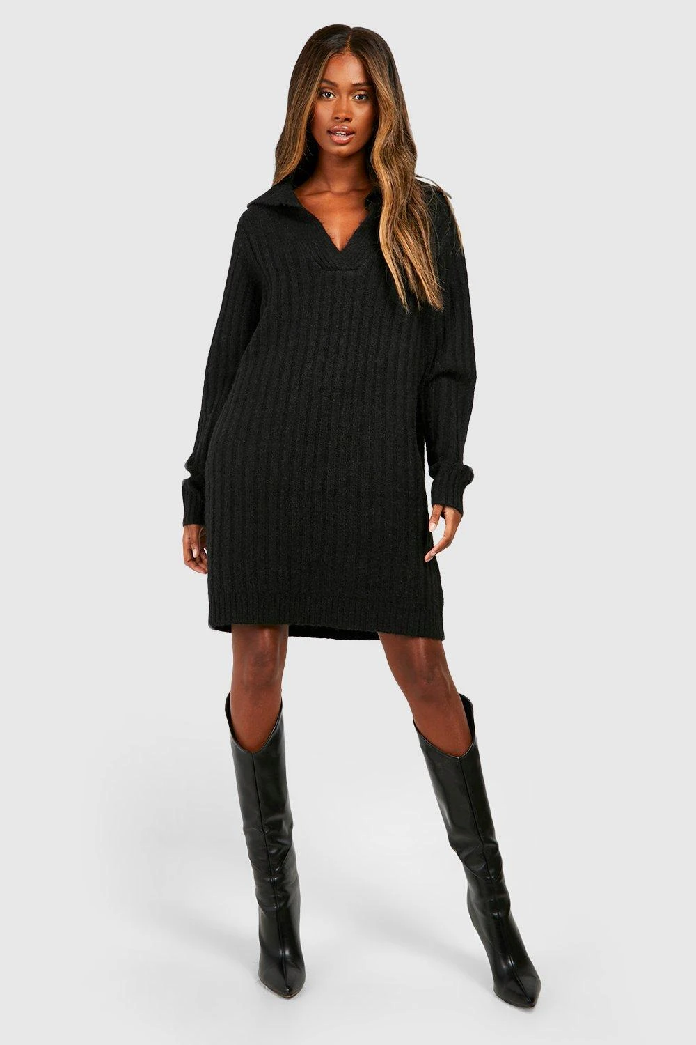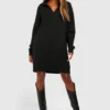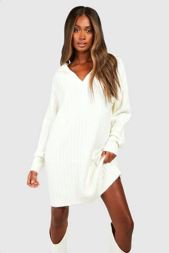 BOOHOO Soft Wide Rib Knit Collared Jumper Dress