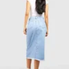 BOOHOO Split Front Fray Hem Denim Midi Skirt