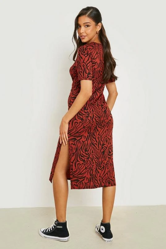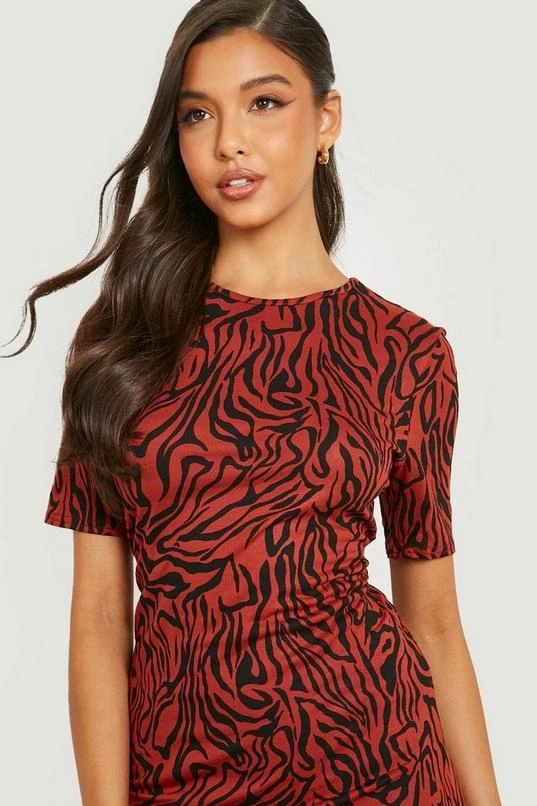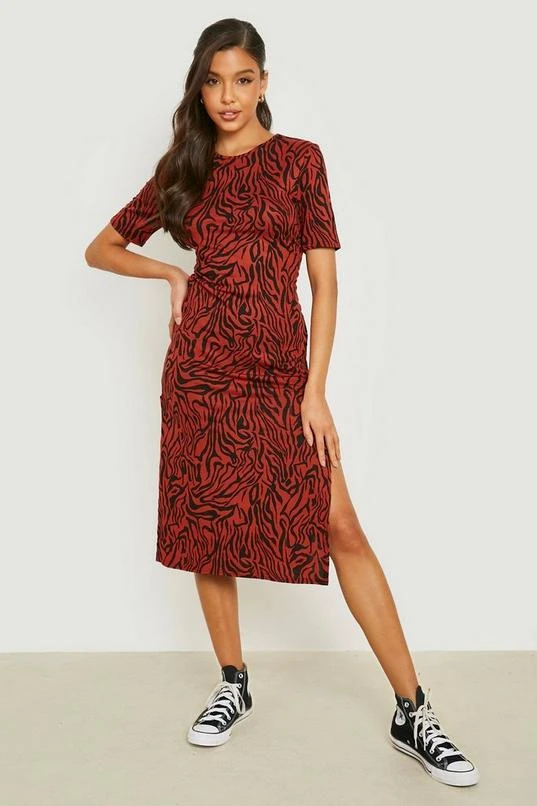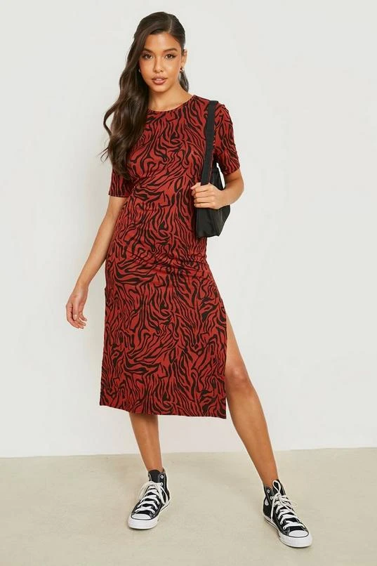 BOOHOO Split Midi T-Shirt Dress In Zebra Print
