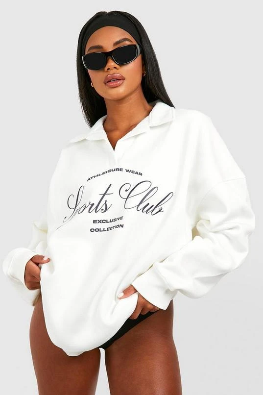 BOOHOO Sports Club Embroidered Collared Oversized Sweatshirt