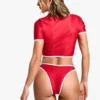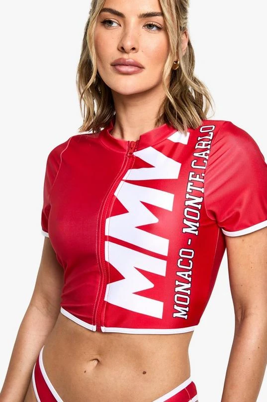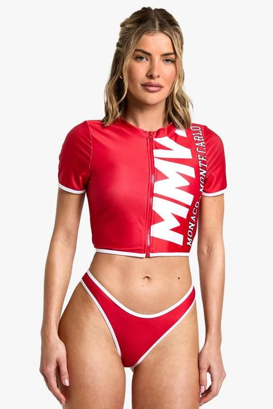 BOOHOO Sports Graphic Crop Bikini Top & Tanga Bikini Bottoms Set
