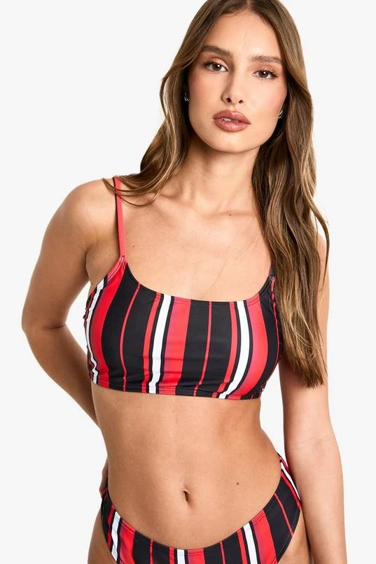 BOOHOO Sports Vertical Stripe Crop Bikini Top & High Leg Bikini Bottoms Set