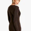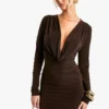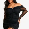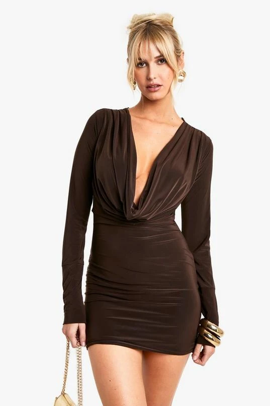 BOOHOO Square Neck Long Sleeve Slinky Bodycon Dress