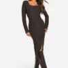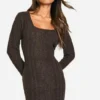 BOOHOO Square Neck Mixed Rib Knitted Midaxi Dress