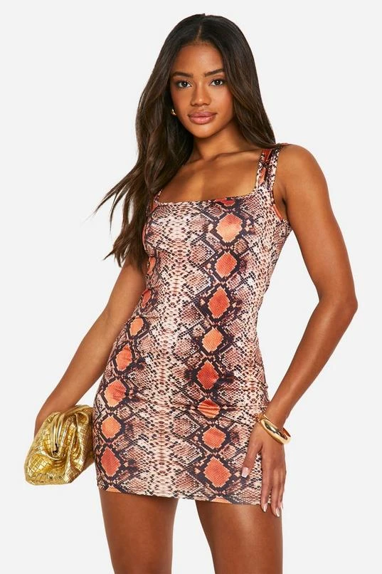 BOOHOO Square Neck Snakeskin Mini Dress