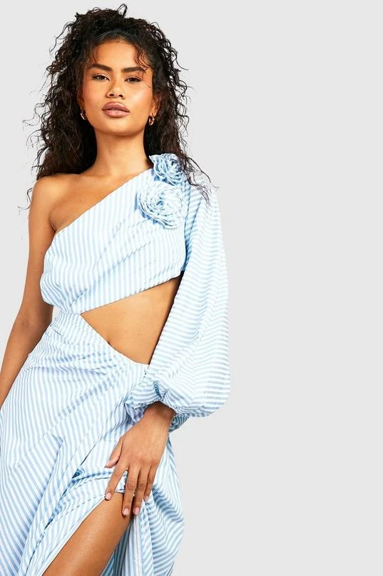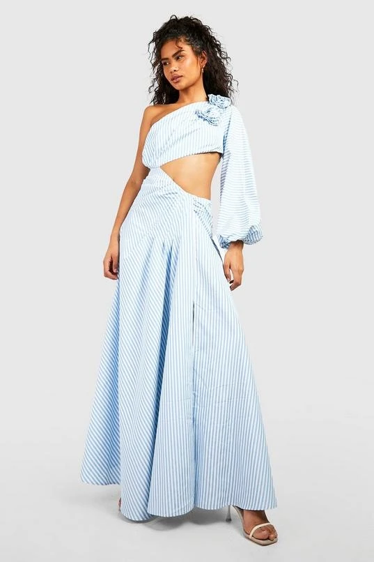 BOOHOO Stripe Cut Out Flower Maxi Dress
