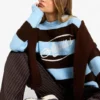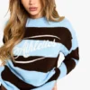 BOOHOO Stripe Embroidered Athletics Knitted Oversized Crew Neck Jumper