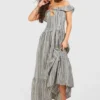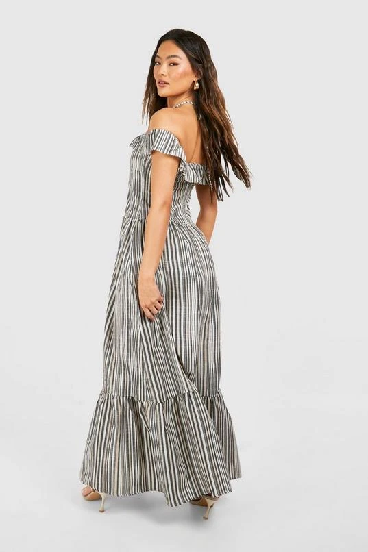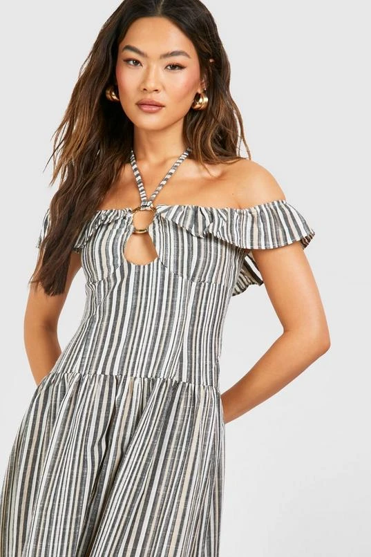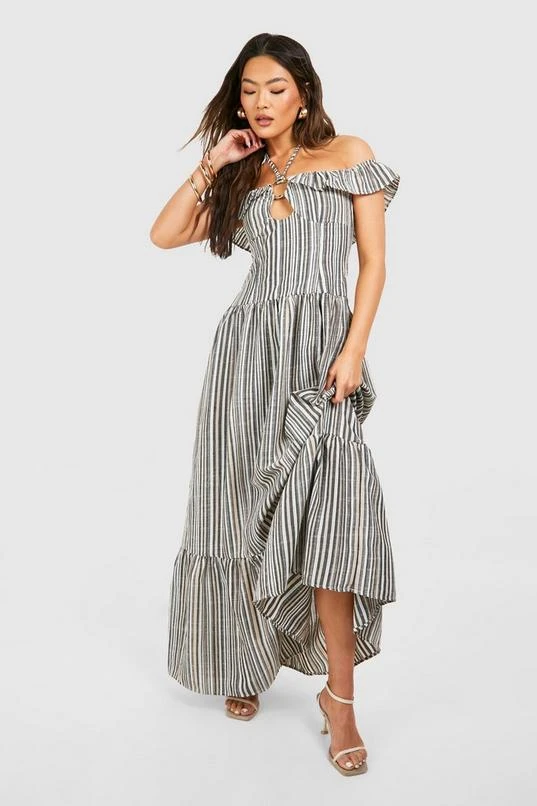 BOOHOO Stripe Halter Tiered Maxi Dress