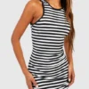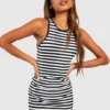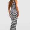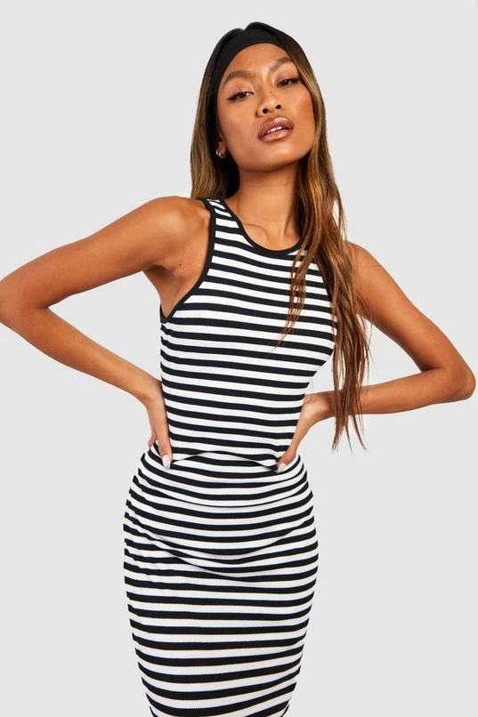 BOOHOO Stripe Rib Racer Neck Midi Dress