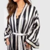 BOOHOO Stripe Satin Kimono Sleeve Maxi Robe