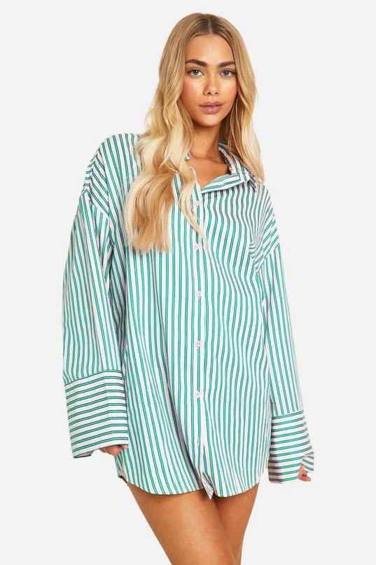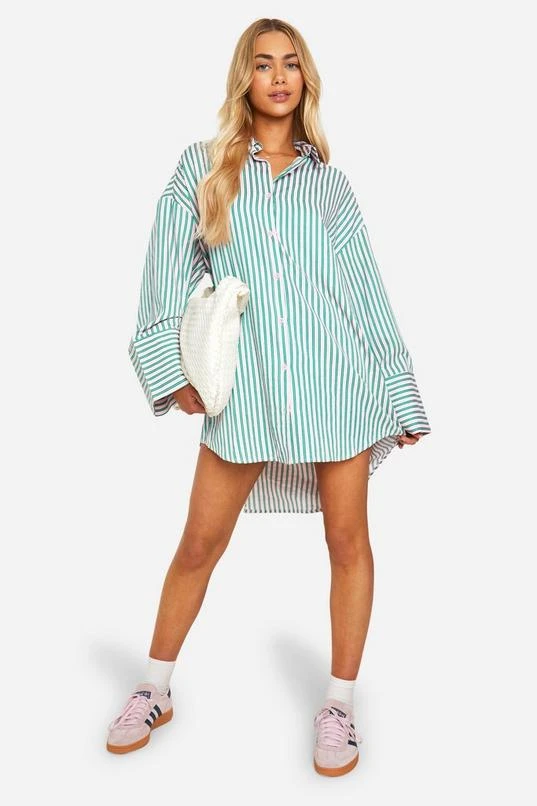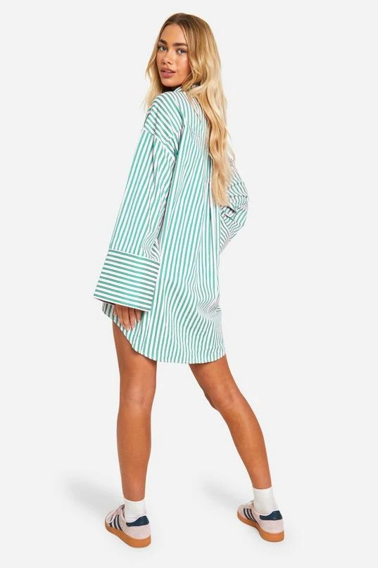 BOOHOO Stripe Wide Sleeve Shirt Dress