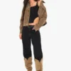 BOOHOO Suede Look Contrast Stitch Jacket