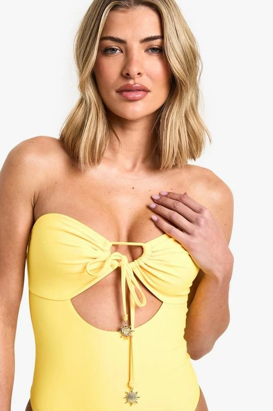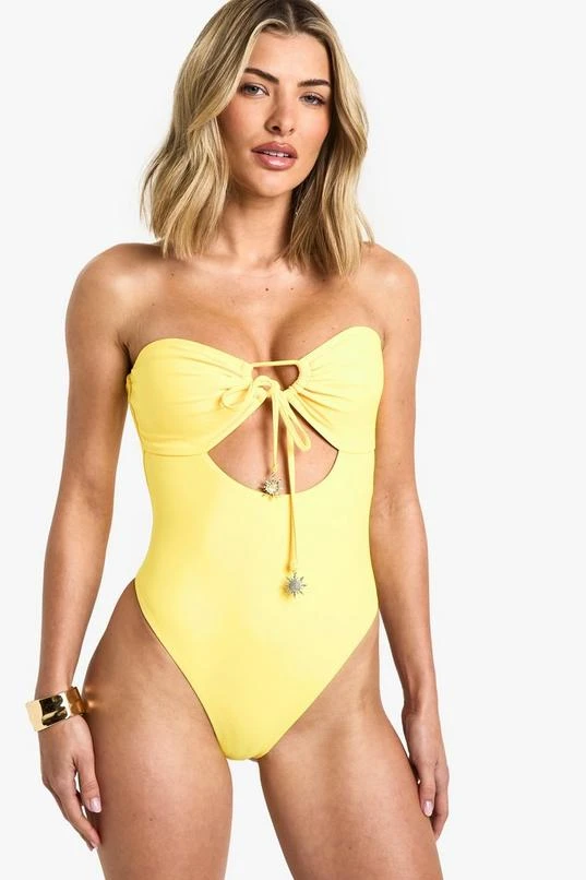 BOOHOO Sunshine Trim Cutout Bandeau Swimsuit