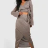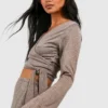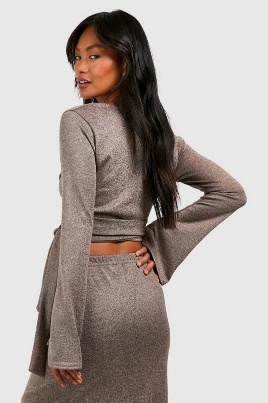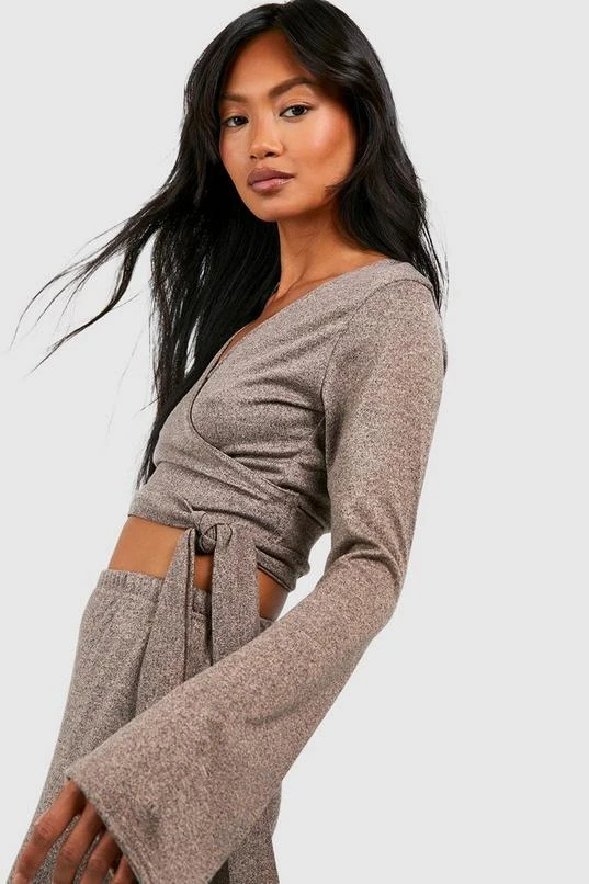 BOOHOO Super Soft Marl Flared Sleeve Wrap Top