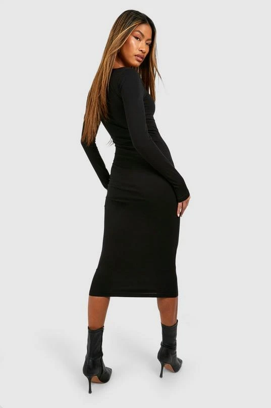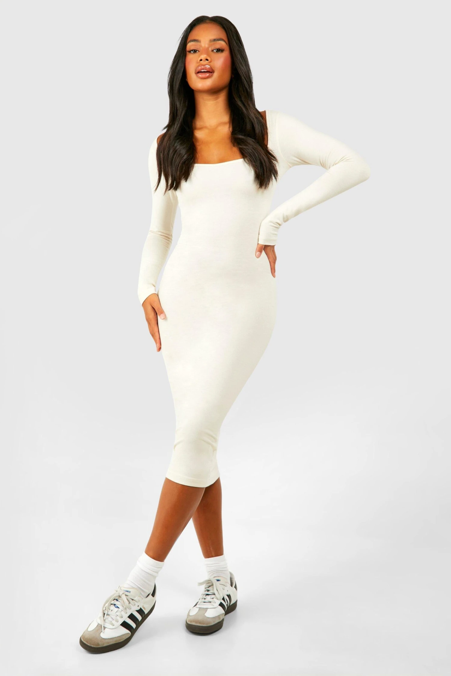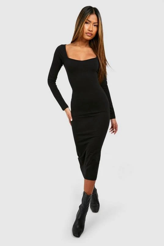 BOOHOO Sweetheart Cotton Long Sleeve Midi Dress