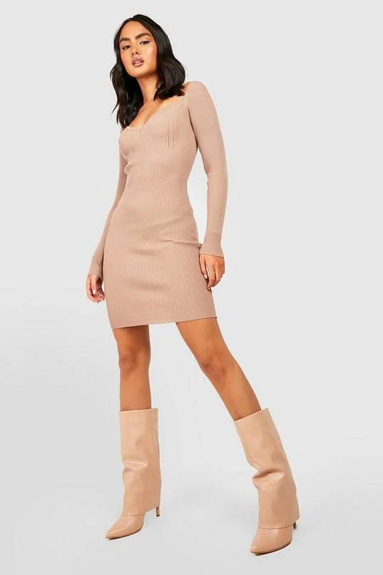 BOOHOO Sweetheart Neckline Rib Knit Mini Dress
