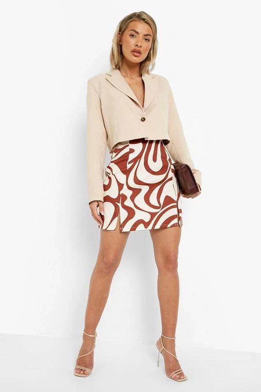 BOOHOO Swirl Marble Print Soft Woven Mini Skirt