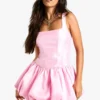 BOOHOO Taffeta Bubble Hem Lace Up Mini Dress