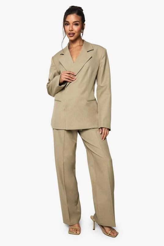BOOHOO Tailored Textured Woven Straight Leg Trouser